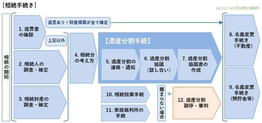 遺産分割調停と遺産分割審判の2つがありますが、遺産分割調停から進められるのが通例です。