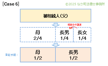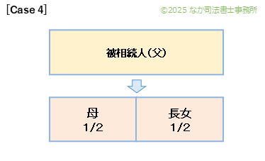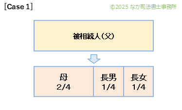 本事例では、母(4分の2)、長男(4分の1)、長女(4分の1)の共有名義となります。