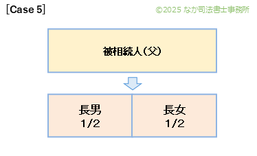 このケースは、相続人全員で法定相続人どおりの配分(持分)で共有名義とする場合です。